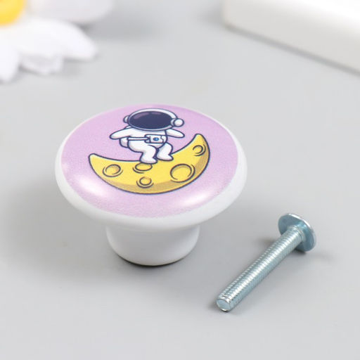 Фурнитура для шкатулки, ручка Космонавт на месяце, керамика, металл, 3.8?3.8 см