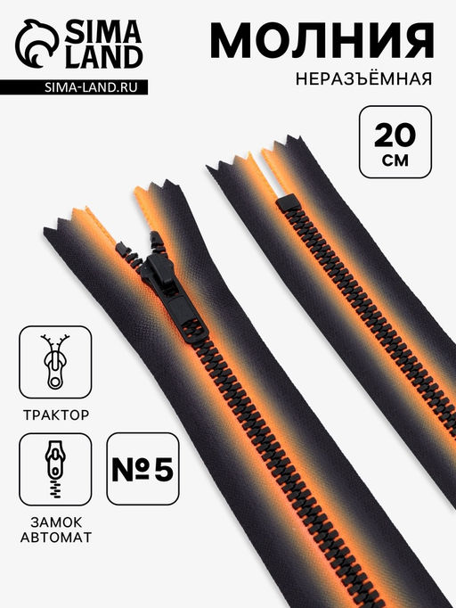 • Цена за 10 шт. Молния «Трактор», №5, неразъёмная, замок автомат, 20 см, оранжевая, чёрная