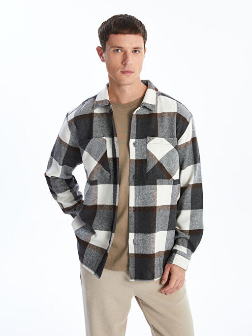 Regular Fit Uzun Kollu Ekose Erkek G?mlek Ceket