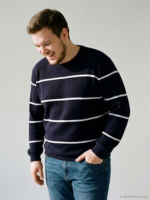 Bisiklet Yaka ?izgili Erkek Triko Kazak