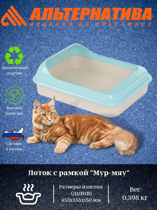 Лоток из коллекции Мур-мяу изготовлен из качественного прочного пластика. Материал абсолютно безопасен для здоровья питомца и не имеет посторонних химических запахов. Высокий борт надежно фиксируется по периметру лотка и предотвращает разбрасывание наполнителя. Борт легко убирается, если Ваш любимец еще совсем маленький и ему трудно залезть в лоток. Отсутствие острых углов делает изделие безопасным. Туалет не занимает много места, легко моется водой.­