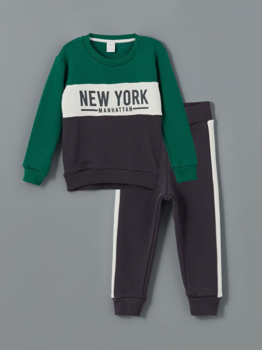 • Bisiklet Yaka Bask?l? Erkek Bebek 2li Tak?m