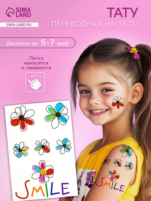 • Цена за 2 шт. Переводные тату на тело цветные Улыбка, 10.5?15.2 см