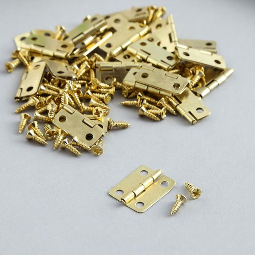 • Цена за 2 шт. Петля для шкатулки металл с закругленными углами золото + саморезы набор 25 шт 1,6х1,3 см