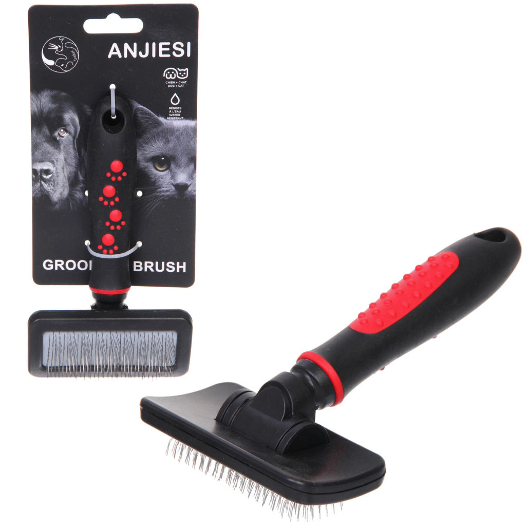 • Расческа - пуходерка для животных "ПРОФФ - МОЙ БРО", прорезиненная ручка, цвет красный/черный, 9,5*16,5см
