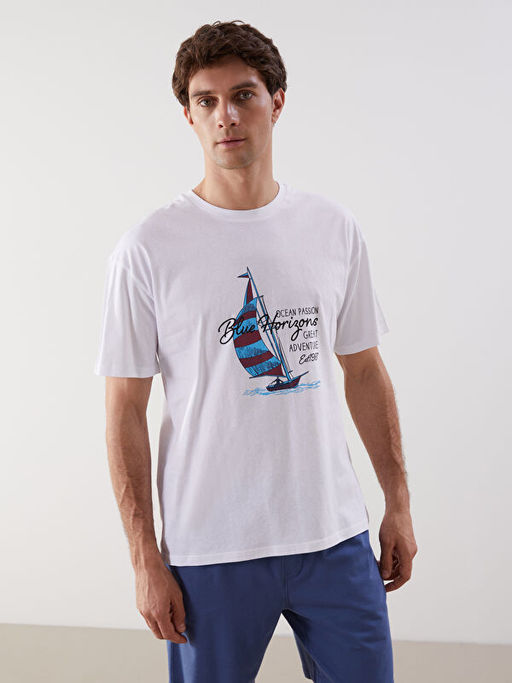 • Bisiklet Yaka K?sa Kollu Bask?l? Penye Erkek Ti??rt