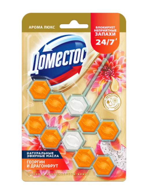 Блок для очищения унитаза Domestos Aroma Lux Экзотический букет (2 х 50 г) это многофункциональное средство для поддержания чистоты санузла.