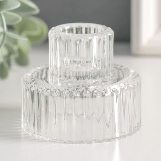 Цена за 2 шт. Стеклянный подсвечник «Торт», двухсторонний, прозрачный, d=2 и 5 см; 6.2×6.2×5 см
