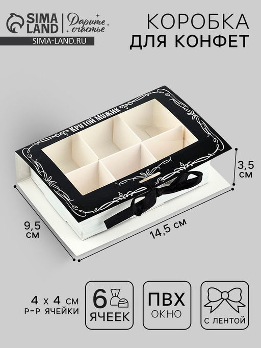 • Цена за 5 шт. Коробка под 6 конфет с ячейками Крутой мужик 14.8?9.5?3.5 см