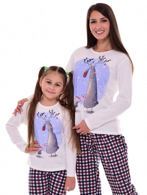 Состав: 100%-хлопок. Женская хлопковая пижама состоит из футболки свободного кроя с длинным рукавом, горловина круглая, на полочке принт. Брюки свободные, прямые, пояс на широкой резинке. Длина футболки по спинке: 42-62 см, 44-64 см, 48-65 см, 50-67 см, 52-68 см, 54-69 см, 56-70 см. Длина рукава: 42-55 см, 44-55 см, 46-55 см, 48-55 см, 50-55 см, 52-56 см, 54-56 см, 56-57 см. Длина брюк по боковому шву: 42-94 см, 44-95 см, 46-96 см, 48-97 см, 50-98 см, 52-99 см, 54-100 см, 56-101 см. Длина брюк по шаговому шву: 42-71 см, 44-72 см, 46-72 см, 48-72 см, 50-72 см, 52-72 см, 54-72 см, 56-72 см. Подкладки нет. Застежки нет. Плотность ткани: тонкая. Комплектность: футболка и брюки. Резинка в поясе брюк. Декор: принт на футболке. Высота посадки: средняя. Уход: деликатная стирка в машине при 30 градусах отдельно от других вещей.
