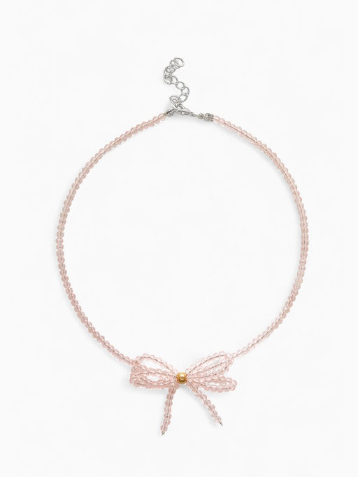 • Чокер из бусин «Хрустальный бантик», 33 см + 5 см цепочка, розовый в серебре