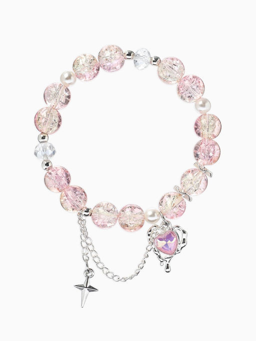 Браслет с подвесками "Сахарный" сердце, искра. шар № 10/8, цвет розово-бежевый в серебре