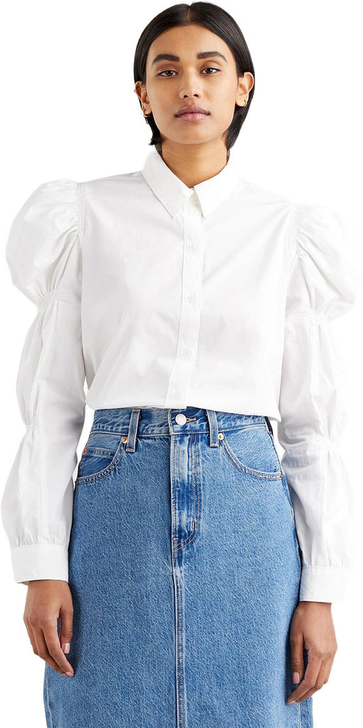 Женская рубашка Levis Zuma Cinched Slv романтичного кроя. Заостренный воротник. Пышные длинные рукава со сборками и мажетами на пуговицах. Закругленный подол. Отлично сочетается с жилетами. Заправьте рубашку в любимые джинсы или носите поверх них - непринужденный романтичный образ вам обеспечен.