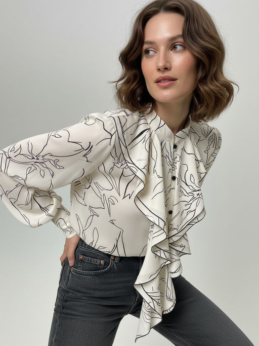 • Блузка с отлетными рюшами OD-914-6 молочный с черным