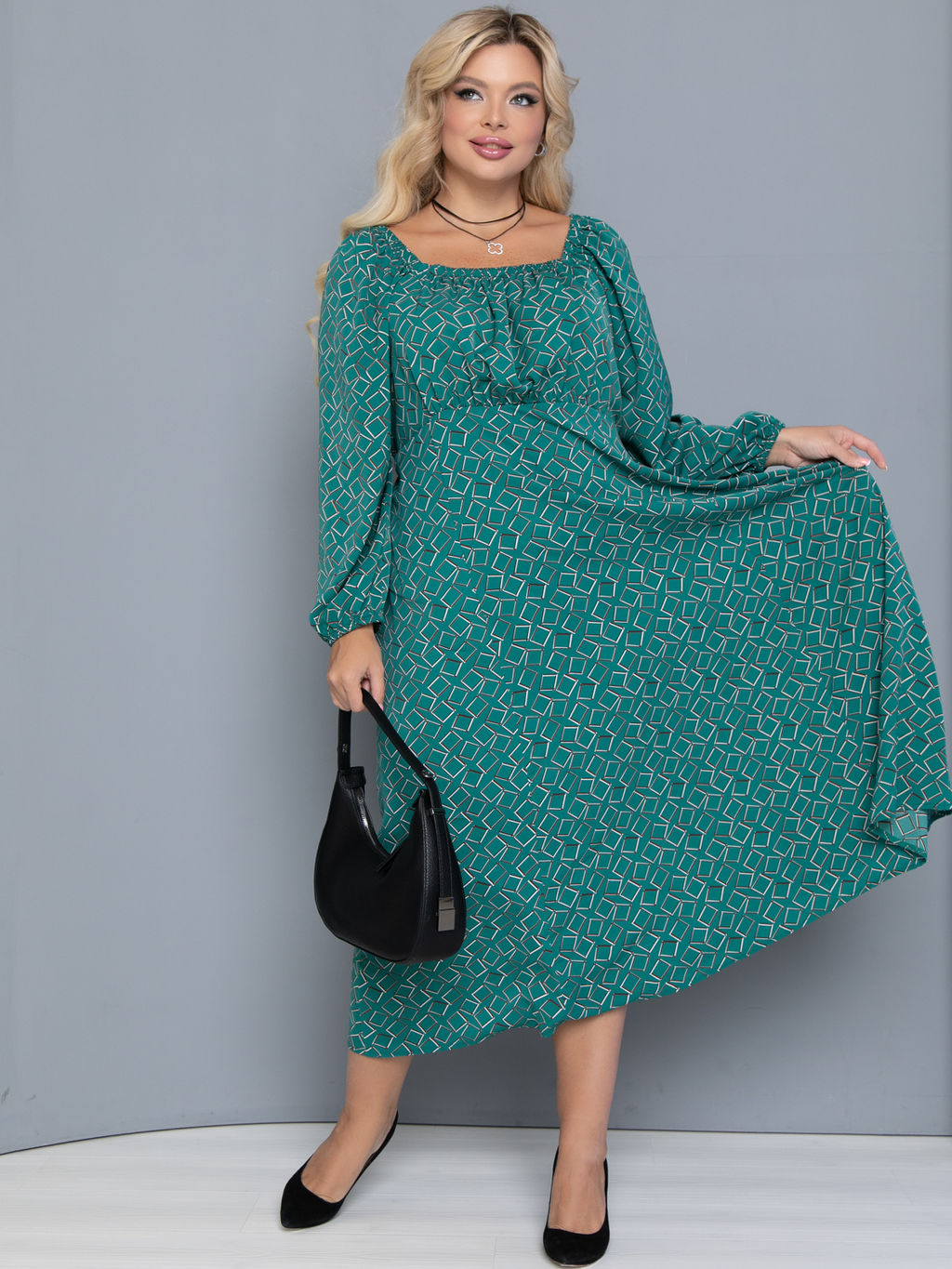 Размер платья на фотомодели 52.