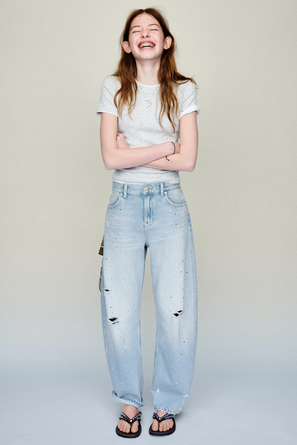 JEANS BALLOON ROTOS Y STRASS / Azul claro