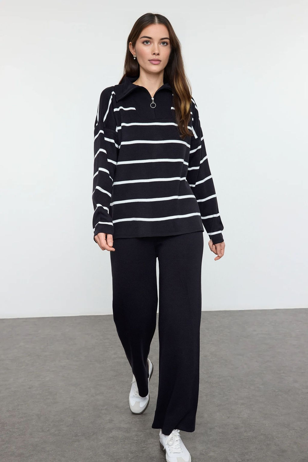• Lacivert Genis Kal?p Fermuarl? Triko Alt-Ust Tak?m TWOAW24AU00025