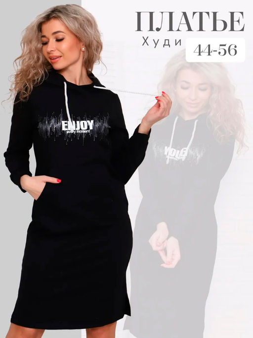 Артикул: Туника женская с капюшоном, модель 170, трикотаж (Энжой, Черный)
