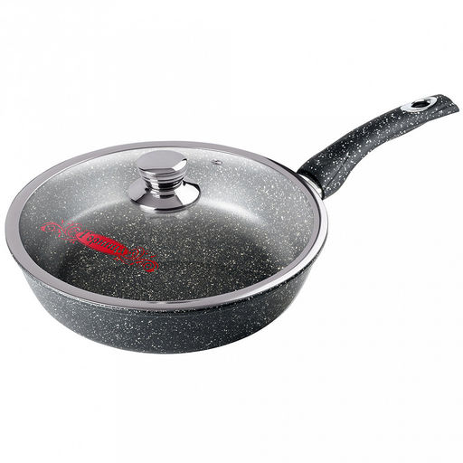• Сковорода с тефлоновым покрытием д22см "Гранит", h5,5см, s0,38см, ручка из термостойкого пластика, стеклянная крышка с пароотводом, подарочная упаковка (Россия)