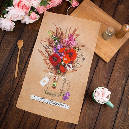 Это кухонное полотенце с весенними цветами станет тёплым напоминанием о празднике и практичным помощником на кухне. Узор, посвящённый 8 Марта, создаёт особое настроение, а классическая ткань рогожка обеспечивает отличную впитываемость и долговечность.
