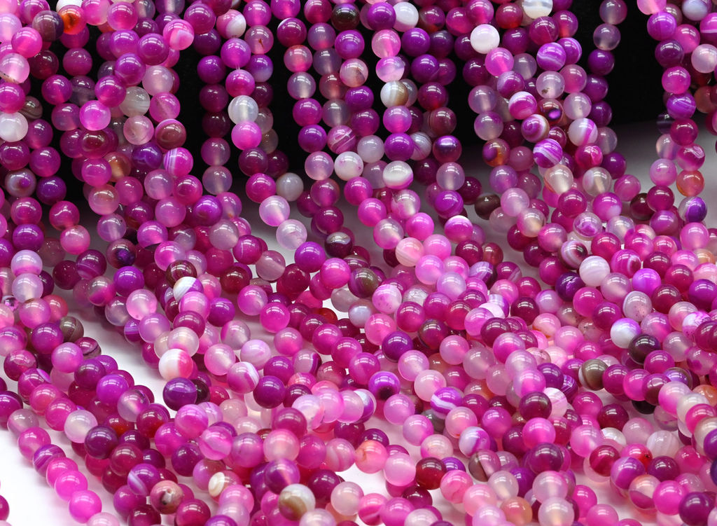Бусины из агата тонированного шарик 6мм цв.фуксия, 38см, 65 бусин Радуга камня