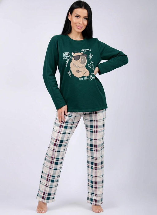 Эта теплая пижама женская с брюками – отличный выбор для уютных вечеров и сна. Она выполнена из мягкого натурального хлопка, который гарантирует комфорт и тепло в холодное время года. Благодаря умеренной плотности ткани, пижама женская подходит как для домашнего отдыха, так и для спокойных ночей и стильной пижамной вечеринки.