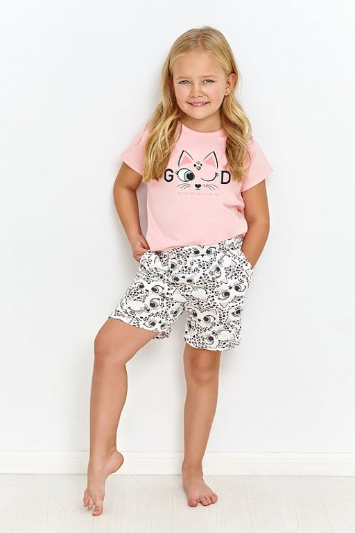 Розовая пижама для девочек Lexi из шорт и футболки. Футболка с коротким рукавом и принтом на груди. Удлиненные шорты с милым принтом на мягкой, комфортной резинке, по бокам удобные карманы. Идеально подходит для сна и в качестве домашнего комплекта.­