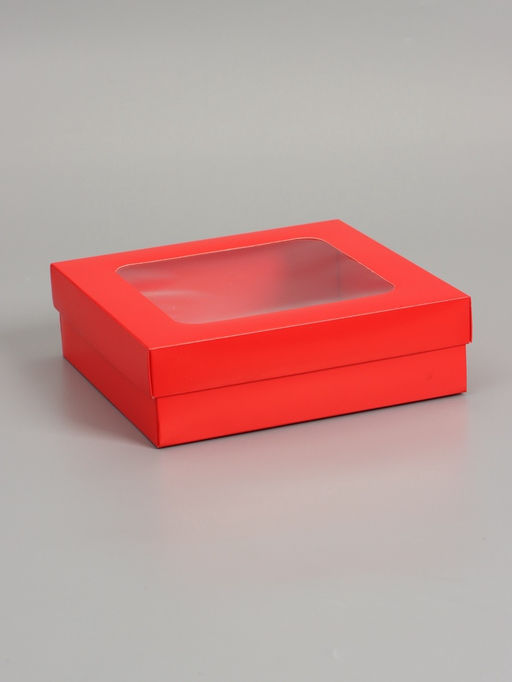 Цена за 5 шт. Коробка складная, крышка-дно, красная, с окном 20×20×6 см