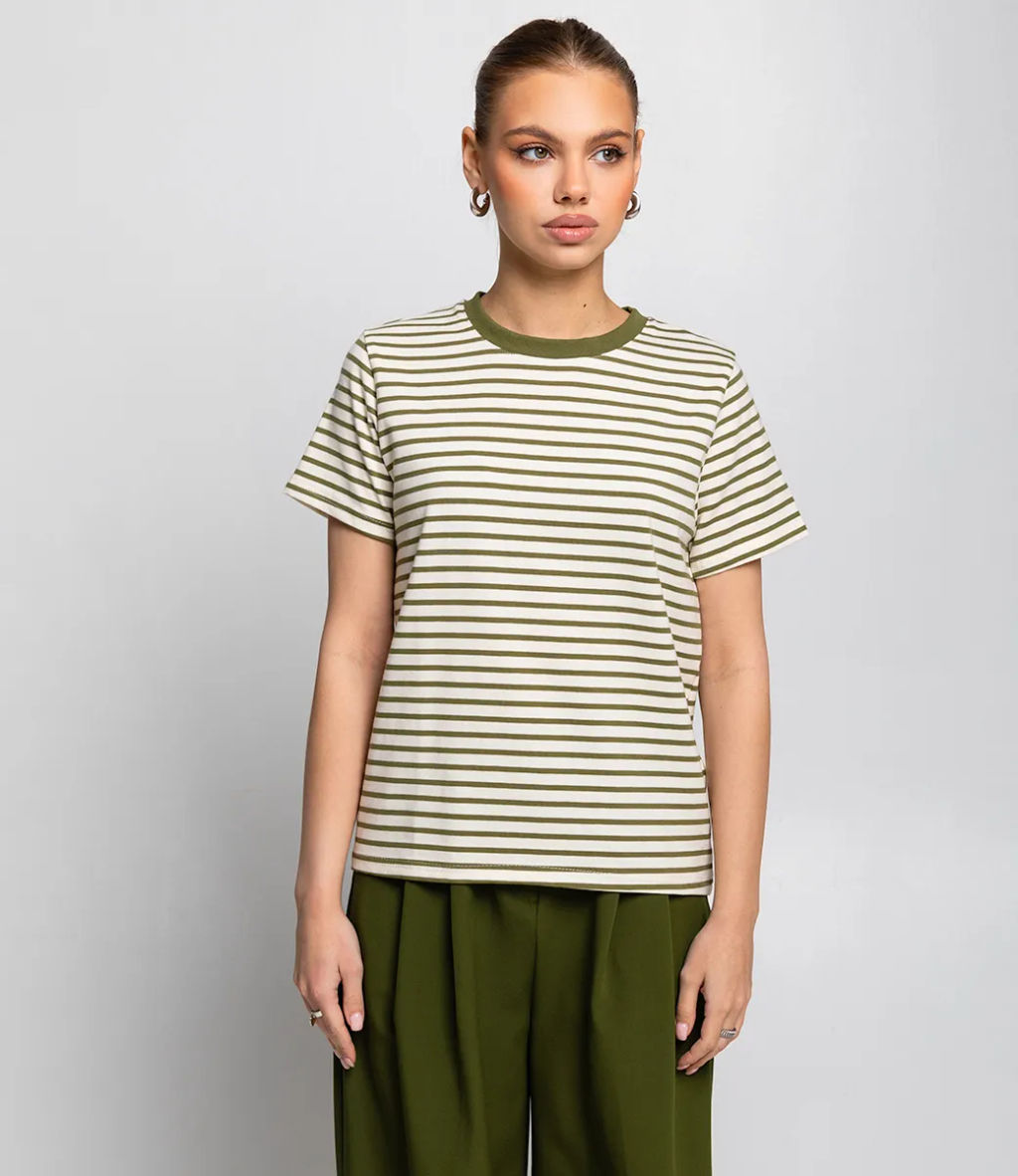 Эта футболка прекрасный выбор для вашего магазина, предлагая стильный и универсальный дизайн, который станет отличным дополнением к гардеробу ваших клиентов. Эта модель представлена в классическом полосатом узоре, сочетая нейтральные и приглушенные тона, что делает её универсальной. Футболка с традиционным круглым вырезом и короткими рукавами, свободного кроя, что обеспечивает свободу движений и комфорт. Идеально подходит для сочетания с джинсами, шортами или брюками, а также может быть использована как базовый элемент для создания многослойных образов. Выполненная из ткани с 95% хлопка и 5% полиэстер, футболка обеспечивает отличное качество и приятные тактильные ощущения. Независимо от сезона, она станет любимым элементом в гардеробе ваших клиентов. На странице сайта доступна таблица размеров, что позволит вашим покупателям легко найти подходящий вариант. Установленная цена делает эту футболку доступной для широкой аудитории, что обеспечит вам высокий уровень продаж. Рост 168, 89-63-90. -- Характеристики -- Цвет: зеленый Пол: Женский Страна производитель: Китай Сезон: Всесезонный Материал: Хлопок, Полиэстер