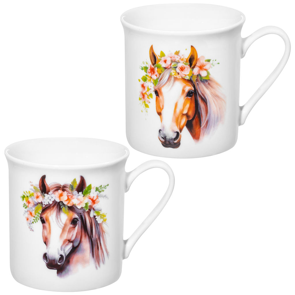 • Набор кружек 2 пр. 310 мл 11,5*8,5*9 см "Лошадь с цветочным венком", фарфор