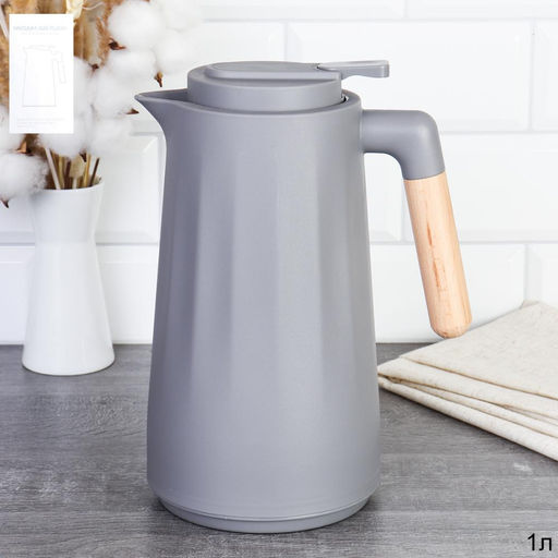 • Термос кувшин 1 л с деревянной ручкой Грани / KGR-921 /уп 20/ Серый