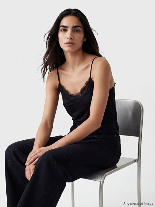 V Yaka Dantel Detayl? ?p Ask?l? Bluz