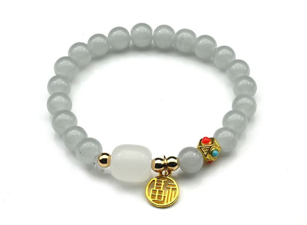 Браслет На удачу с подвеской шарик 8мм цв.дымка, 17см