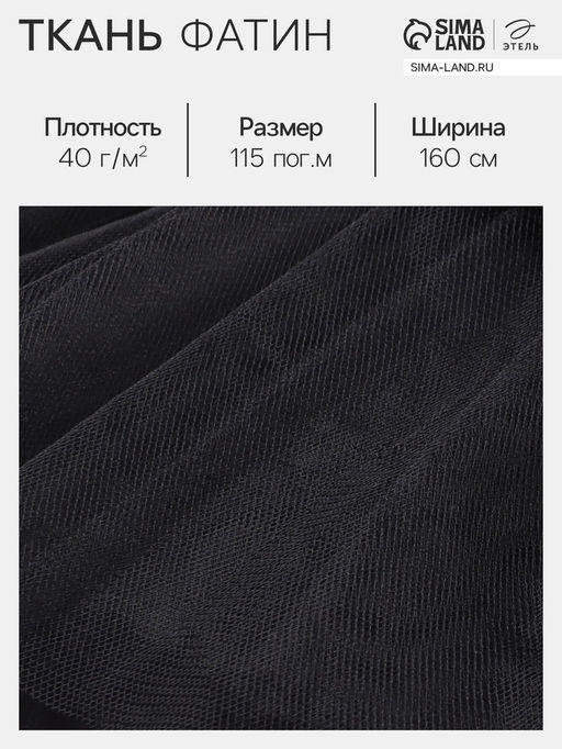 • Цена за 115 шт. Фатин для рукоделия и шитья, 40 г/м², ширина 160 см, чёрный