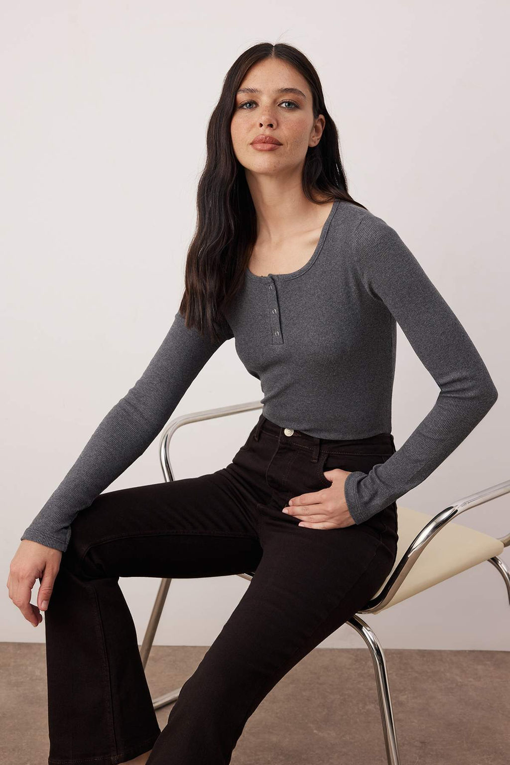 Antrasit C?tc?tl? Fitted/Vucuda Oturan Fitilli Esnek Orme Bluz TWOAW25BZ00080