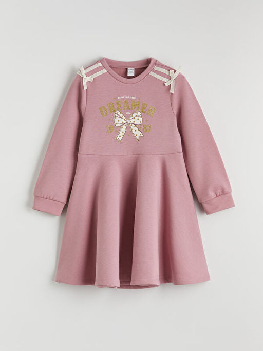 Bisiklet Yaka Bask?l? K?z ?ocuk Elbise