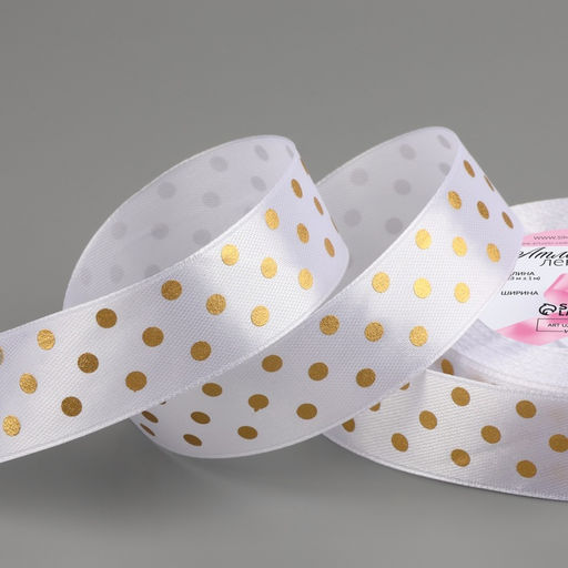 • Лента атласная с тиснением «Горох», 25 мм, 23±1 м, белая №01