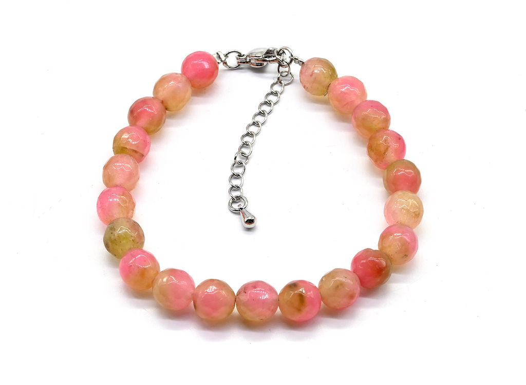 • Браслет с шариками кальцита 8мм с замком, цвет клубничный, 19см