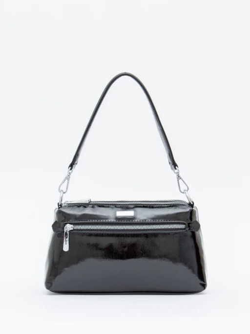 Сумка кросс-боди, выполнена из экокожи. Дополнена серебристой фурнитурой. Данная модель закрывается на молнии, носится в руке за съемную ручку или на плече. В комплекте имеется ремень с регулировкой длины.