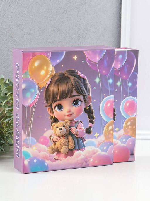 • Фотоальбом на 80 фото 10х15 см "Малышка с косичками, с мишкой" в коробке 5х19х22,8 см