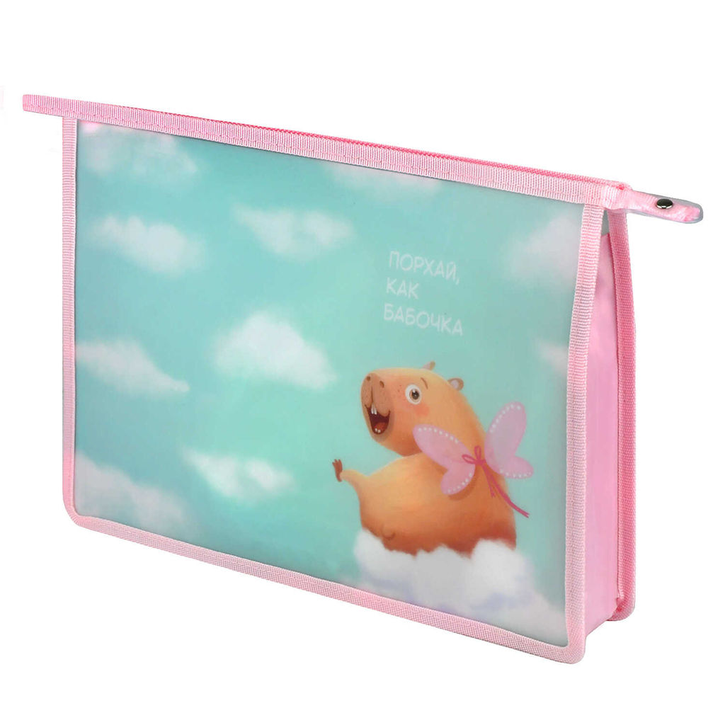 Папка для школьных тетрадей пластиковая Феникс+, арт. 72354/ 12 КАПИБАРА-МИЛАШКА (полипропилен, формат А4, 33x23х7 см, 1 отделение (-я), молния, дно с расширением, пластик с глиттером, УФ-печать)