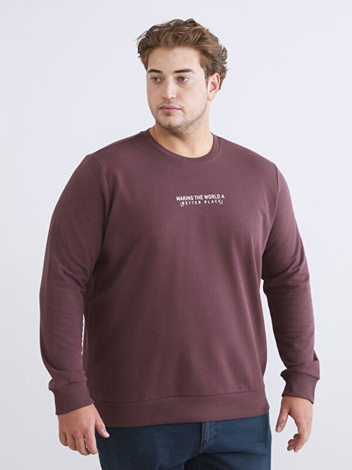 Bisiklet Yaka Bask?l? Erkek Sweatshirt