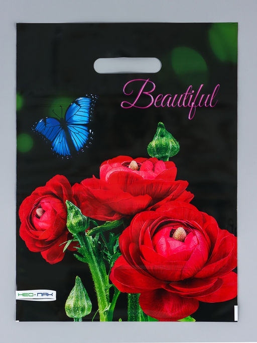 Цена за 25 шт. Пакет подарочный Прекрасный букет, полиэтиленовый с вырубной ручкой 30?40 см, 60 мкм