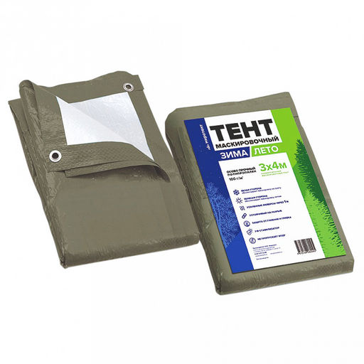 • Тент маскировочный "Зима-Лето" 3х4м из полипропилена 100г/м2, водонепроницаемый, универсальный, на люверсах, хаки (Россия)