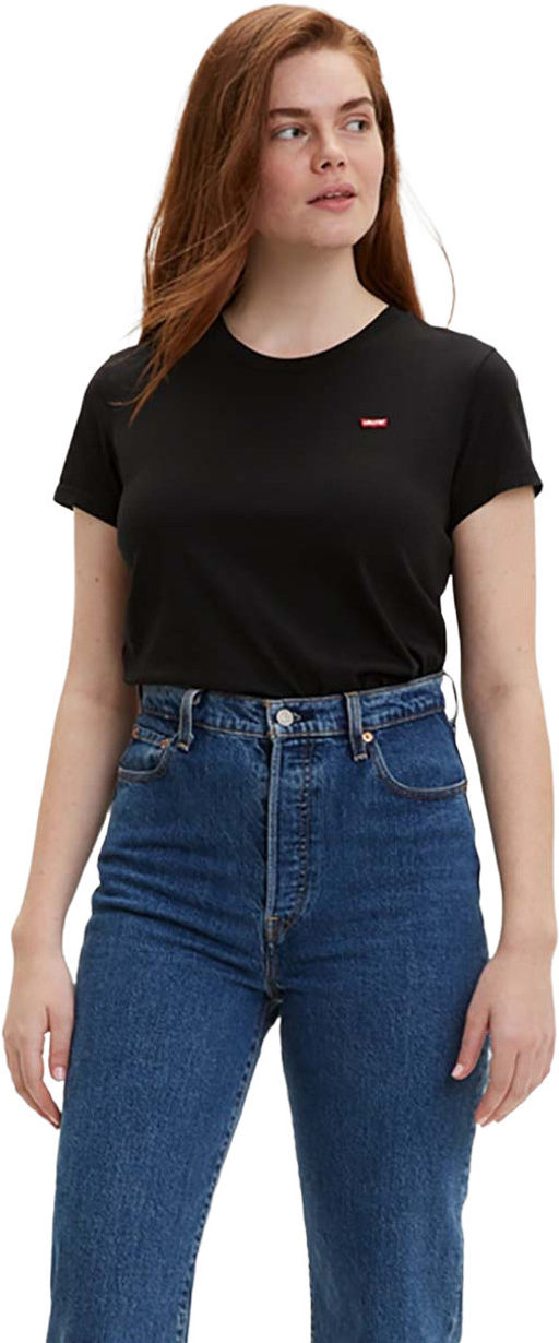 Женская футболка Levis черного цвета. Выполнена из дышащего хлопка. Классический крой, круглый вырез горловины. Небольшая нашивка логотипа Levis Batwings на груди слева. Такая футболка отлично смотрится в паре с любыми джинсами.