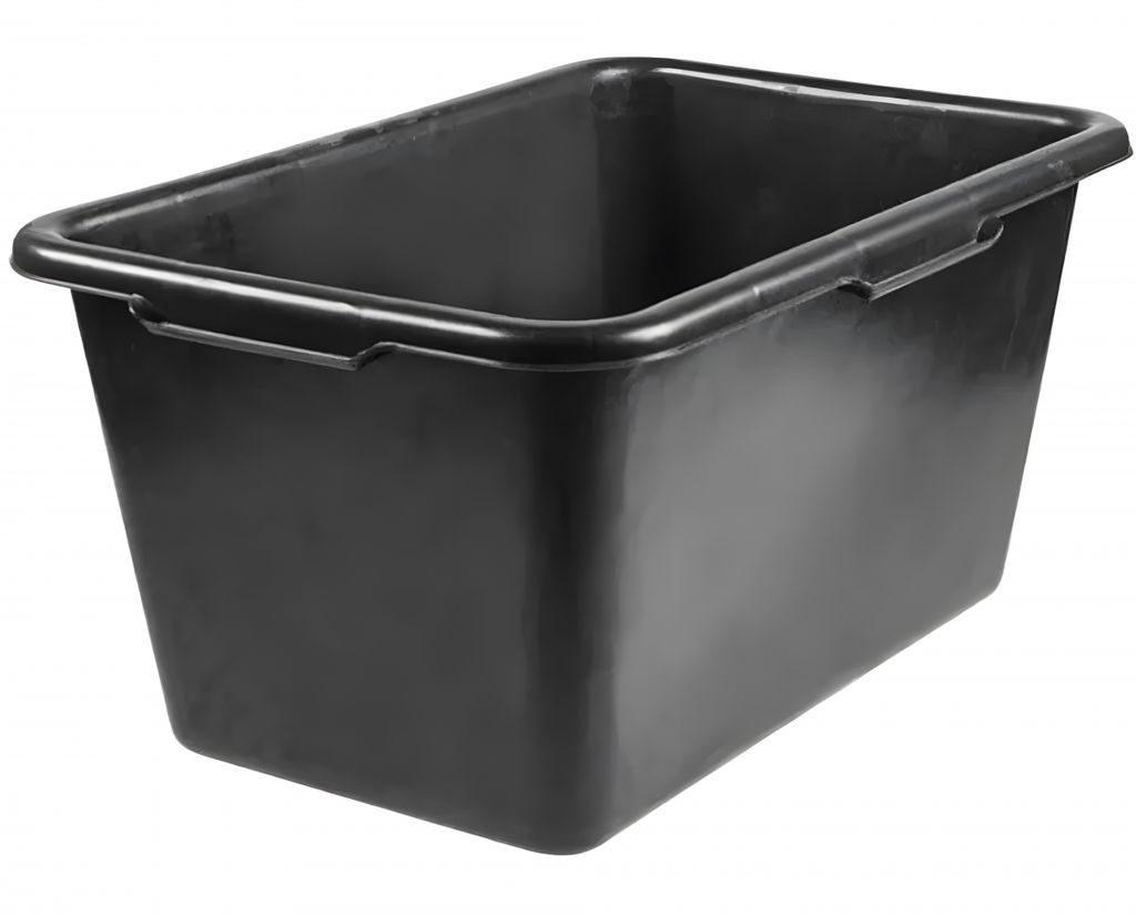 Строительный прямоугольный таз черный, 75 л используется для размешивания строительных и отделочных составов. Сделан из ударопрочного и морозостойкого пластика, не трескается от химического и механического воздействия, в том числе на морозе. Таз вмещает до 75л раствора и подходит для выполнения работ значительного объема.