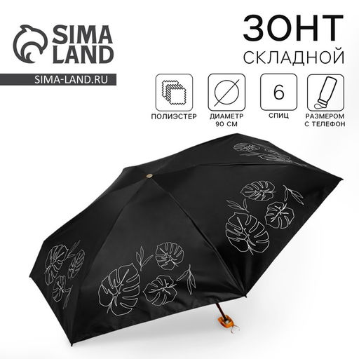 • Зонт женский механический «Тропические листья», 6 спиц, складывается в размер телефона