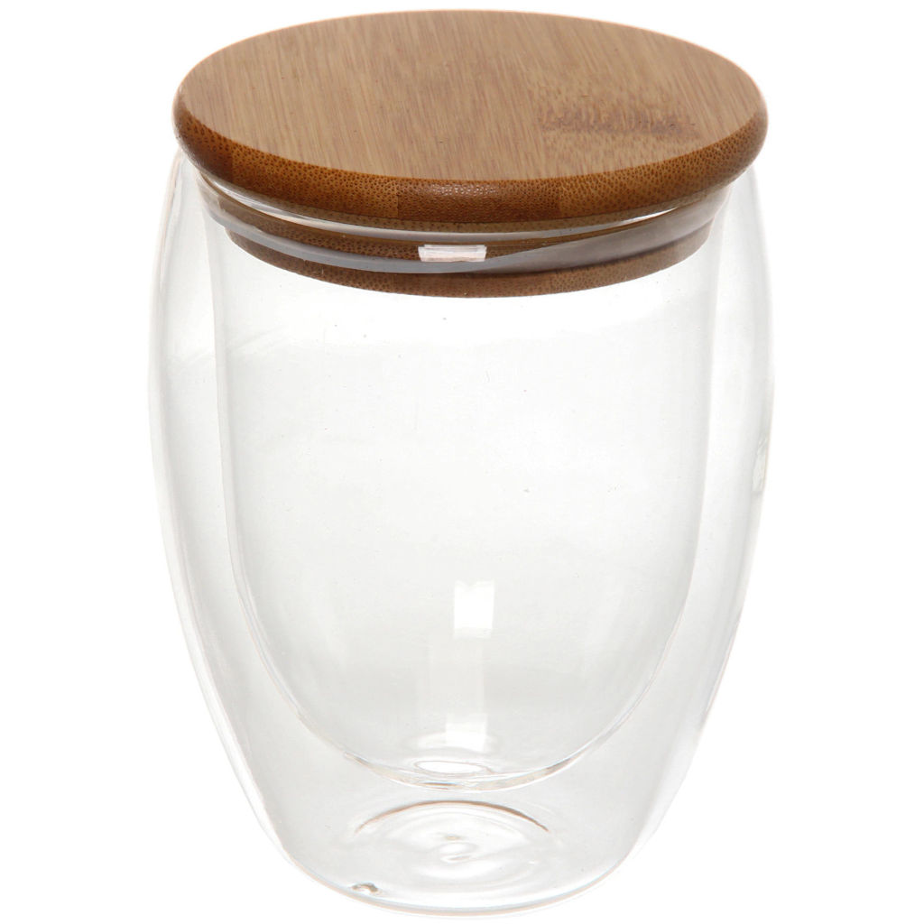 Стакан стеклянный с двойными стенками 350мл "Хай-Тек" с бамбуковой крышкой