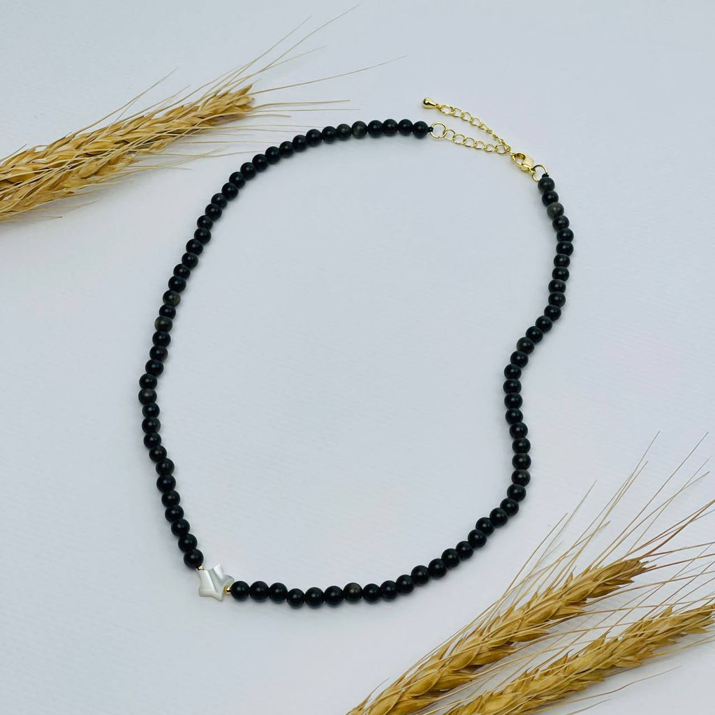 • Бусы из золотистого Обсидиана с перламутром 42 см +