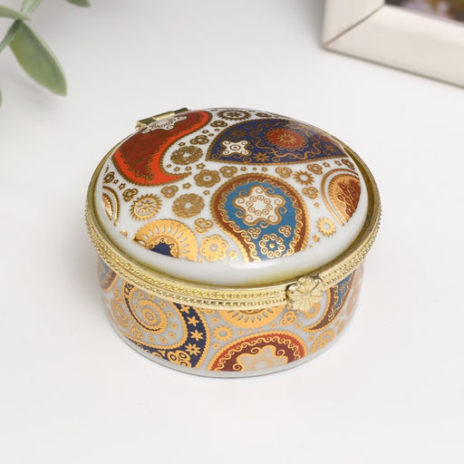 • Шкатулка для украшений круглая «Узор пейсли», керамика, 6.2×6.2×3.3 см